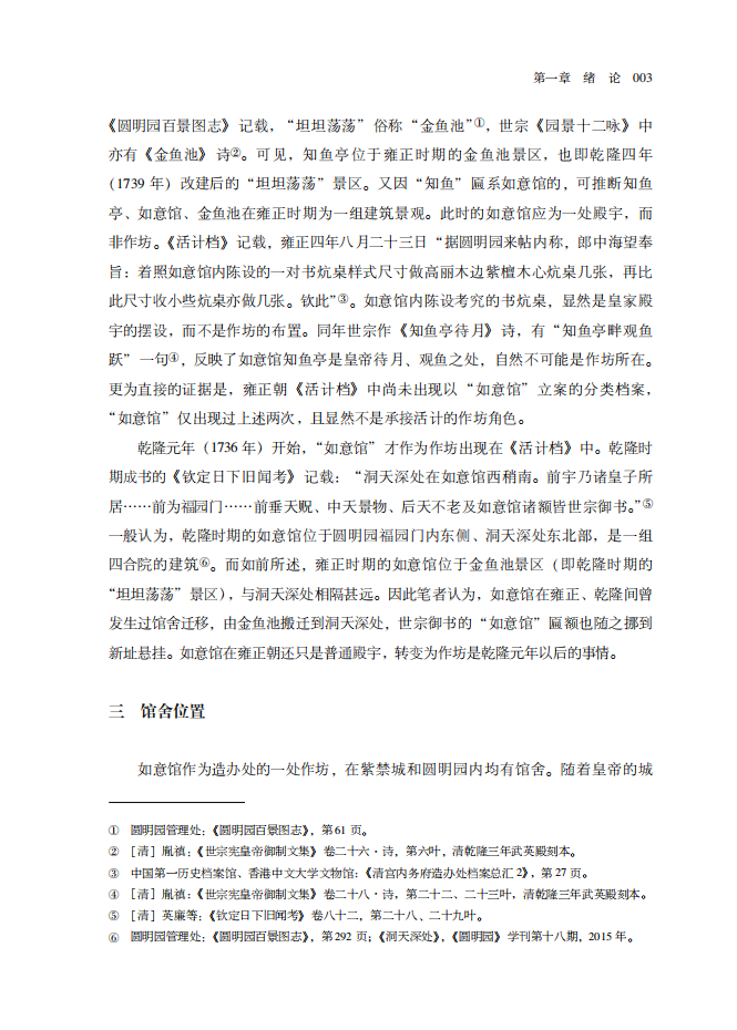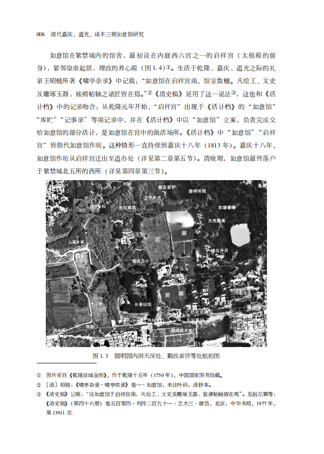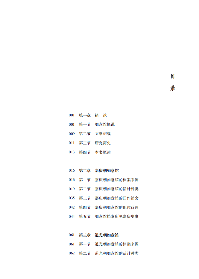 如意馆是清宫内务府造办处下属的一处综合性作坊,从乾隆元年出现一直存续至清末,成做皇帝交办的重要活计,代表了造办处最高工艺水平,其重要性已被学界广泛认识。本书以嘉庆、道光、咸丰三朝如意馆为主要研究对象,时段上正处于如意馆历史的中期,同时也缀合了以往研究的缺环。通过对档案文献的梳理考证,明确了如意馆自诞生前夕直至衰落过程中的重要节点、事件和作品,归纳了其活计种类、发展轨迹以及馆舍位置和规模的变化,更难得的是,从如意馆相关档案的新视角发掘出鲜为人知的宫廷史事,将清宫造办制度研究、文物研究、宫廷史研究等多学科内容全方位结合在一起。